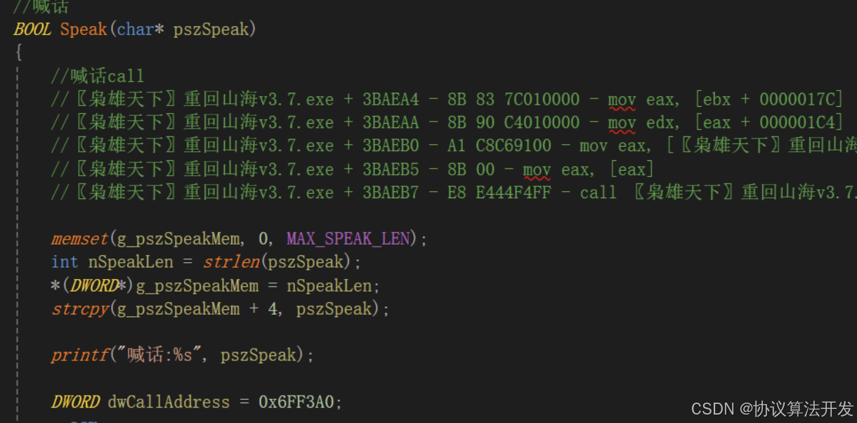 上文提到了,本文是基于内存的Call挂,即注入DLL到游戏,调用游戏内的功能函数实现挂机。除了内存挂,还有图色挂和脱机挂。