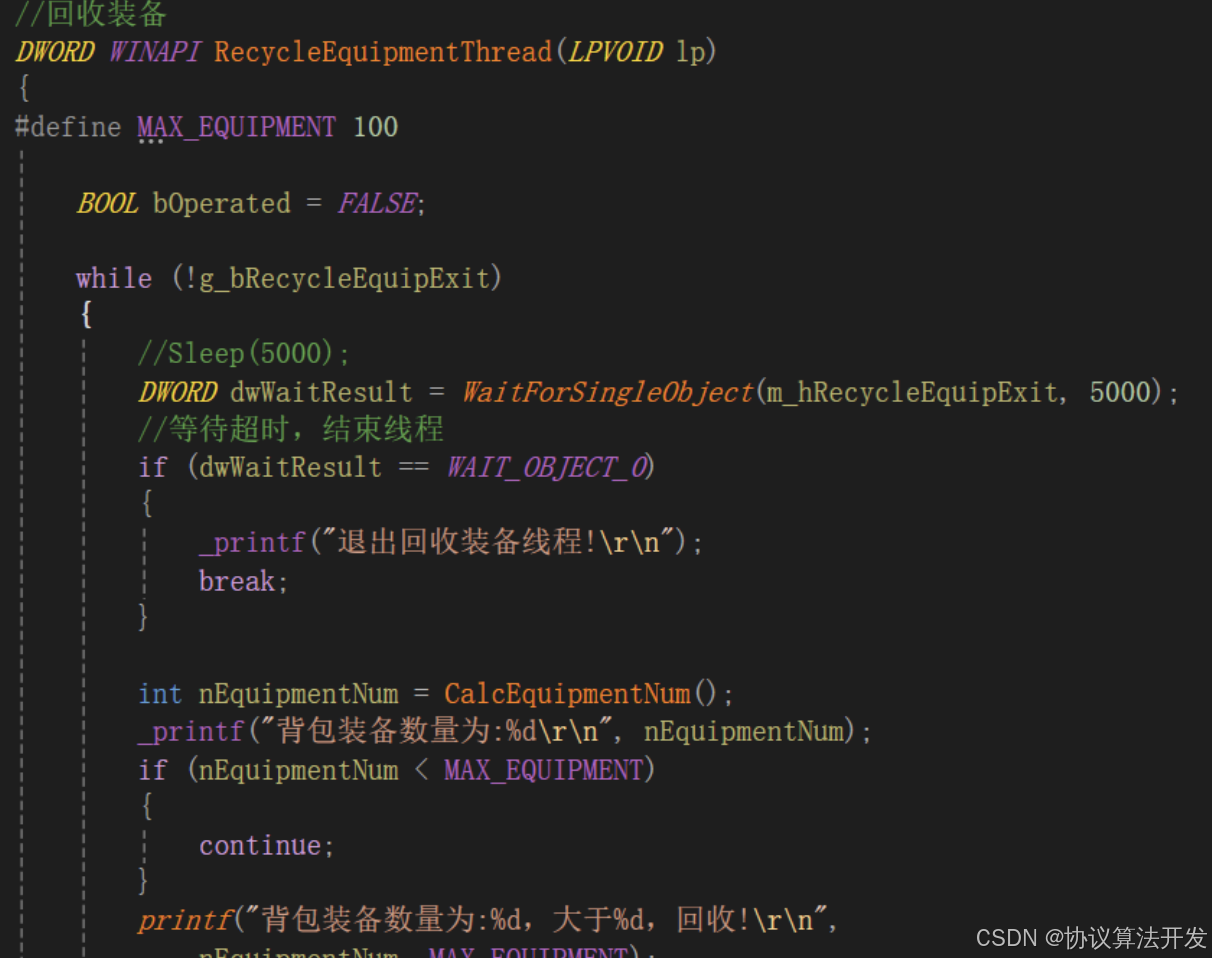 装备回收是模拟用户操作界面点击回收按钮。当然不是模拟点击,而是call内部函数。