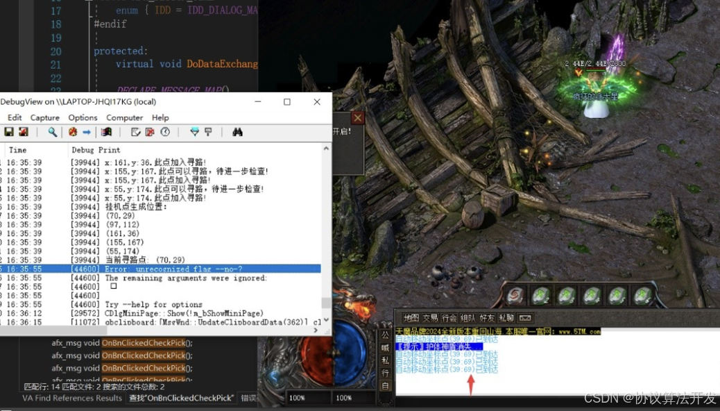 若一段时间内检测打怪状态为0,且怪物血量不为0,说明卡角落打怪了,就调用寻路Call过去打怪。若此时还没检测到则放弃此怪物: