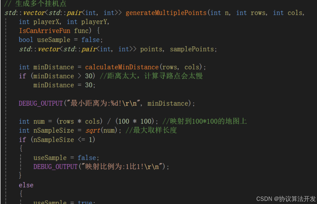 且生成的坐标点是按一定距离生成的。不会出现坐标点之间的距离很近,这样自动挂机就没有意义。同时会按照地图大小,调整这个距离。