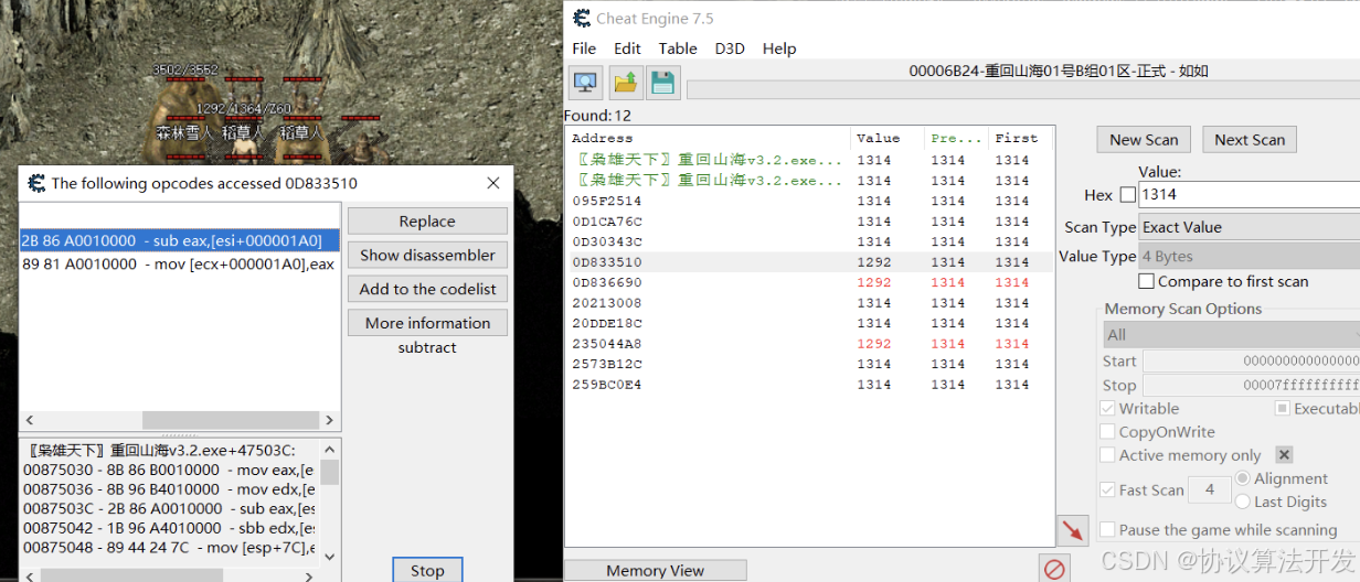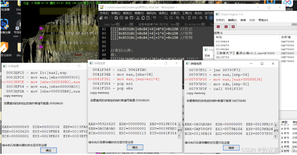 1. CE查找谁访问或写入的地址时,发现是循环的值怎么办,分析其它搜索到的记录。或用CE的指针扫描器。