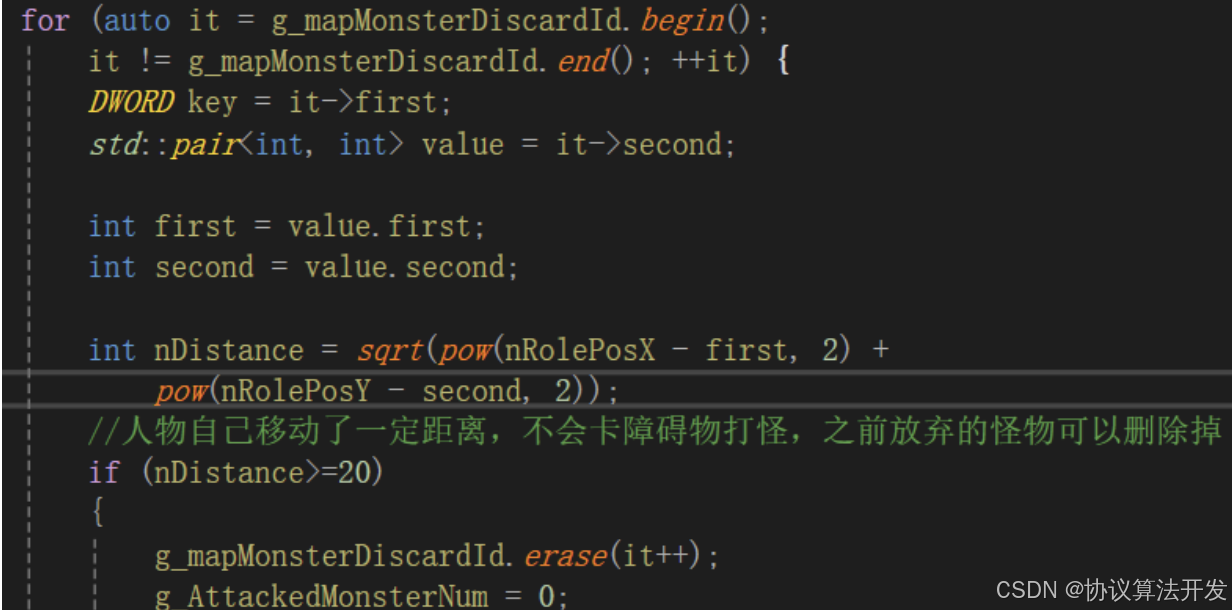 那什么时候重新打此怪物呢?人物自己移动了一定距离,不会卡障碍物就可以重新打怪物。