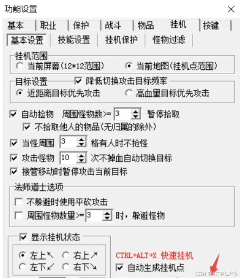 自动打怪是一边寻路到挂机点一边打怪,挂机点是自动生成的,后面会介绍。