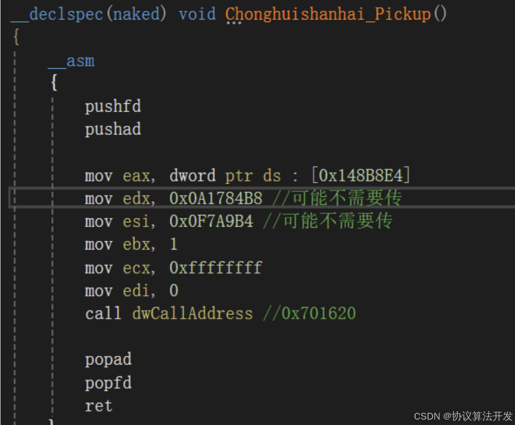 对应的汇编调用代码如下: