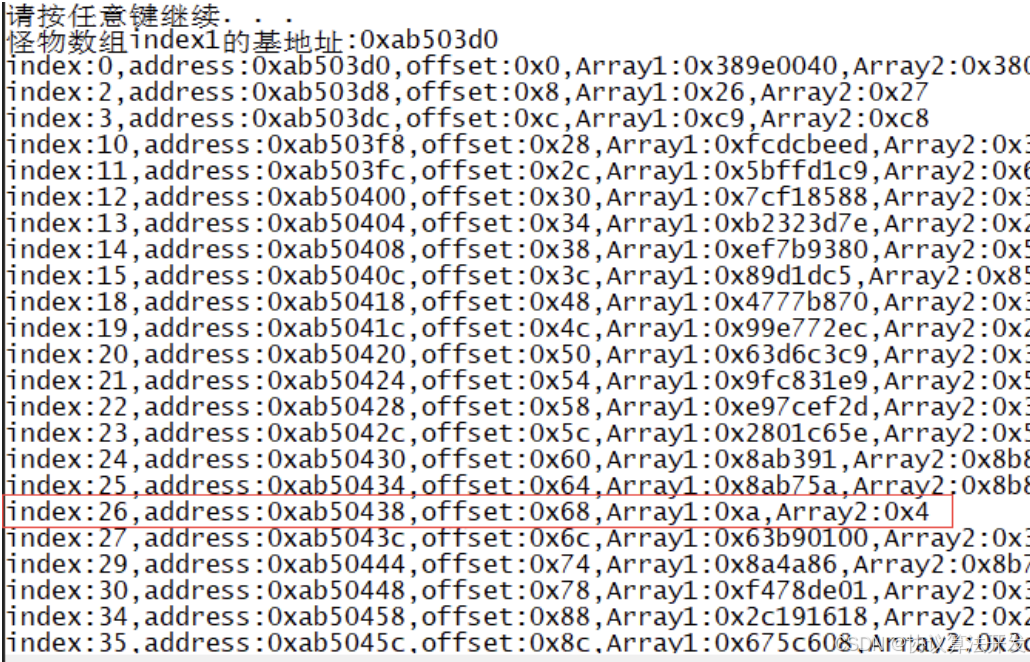 按上面基地址的公式,观察内存中的数据可以得到: