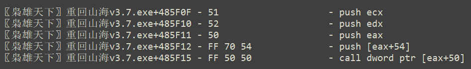 然后查找eax的基地址,之后调用0x701620就行了。0x701620是因为游戏exe的基地址是0x400000,加上0x301620就是了。